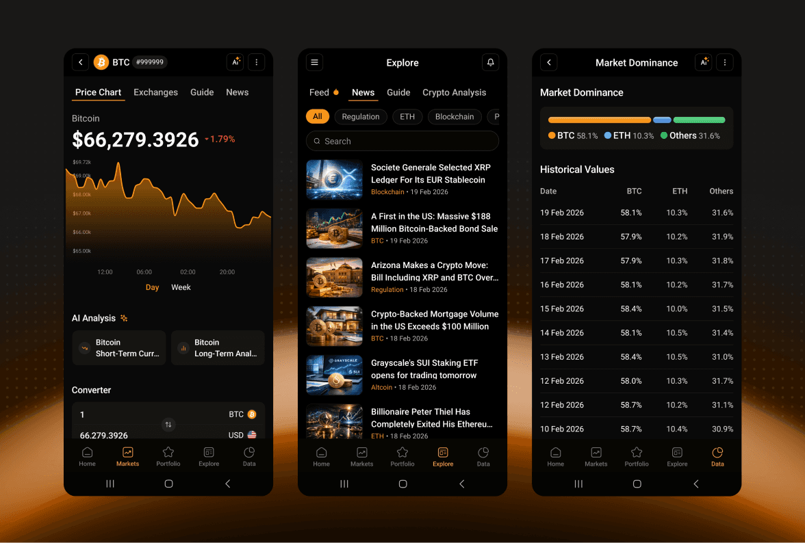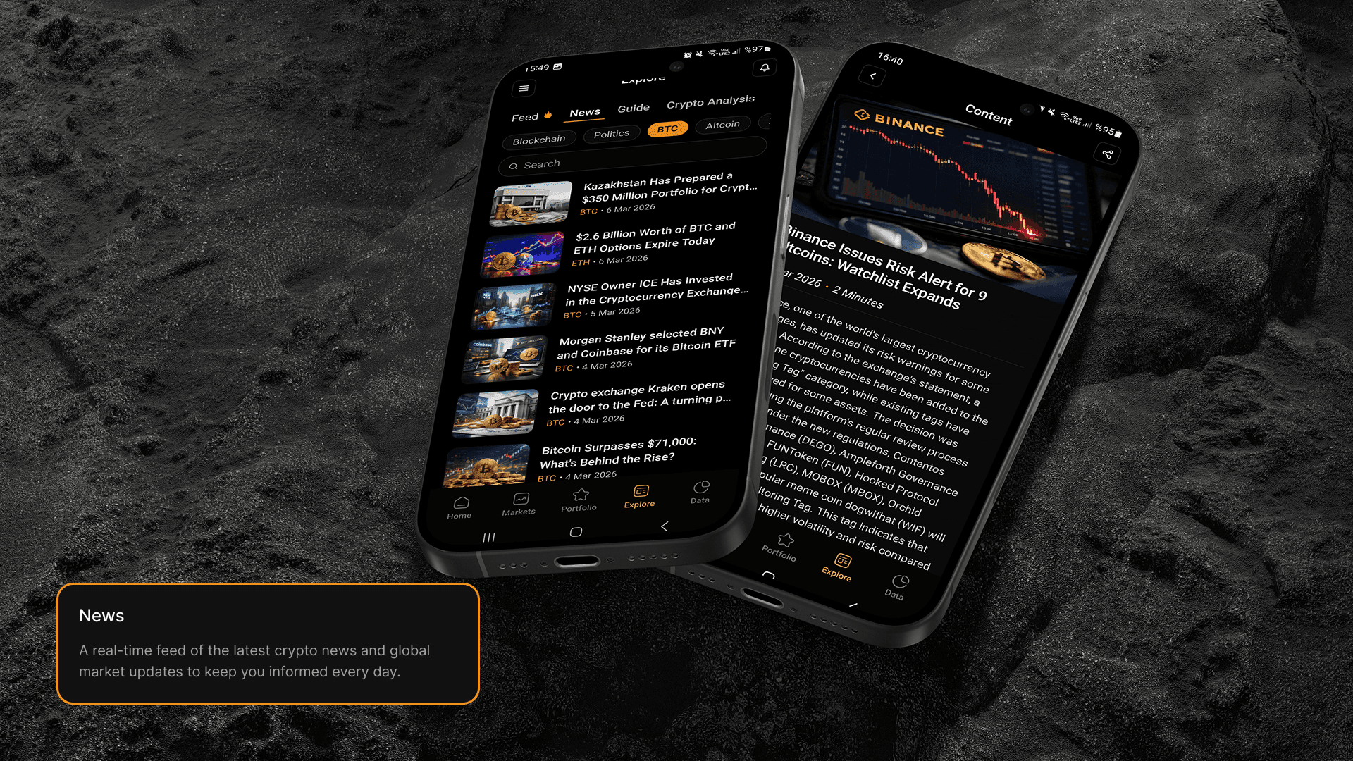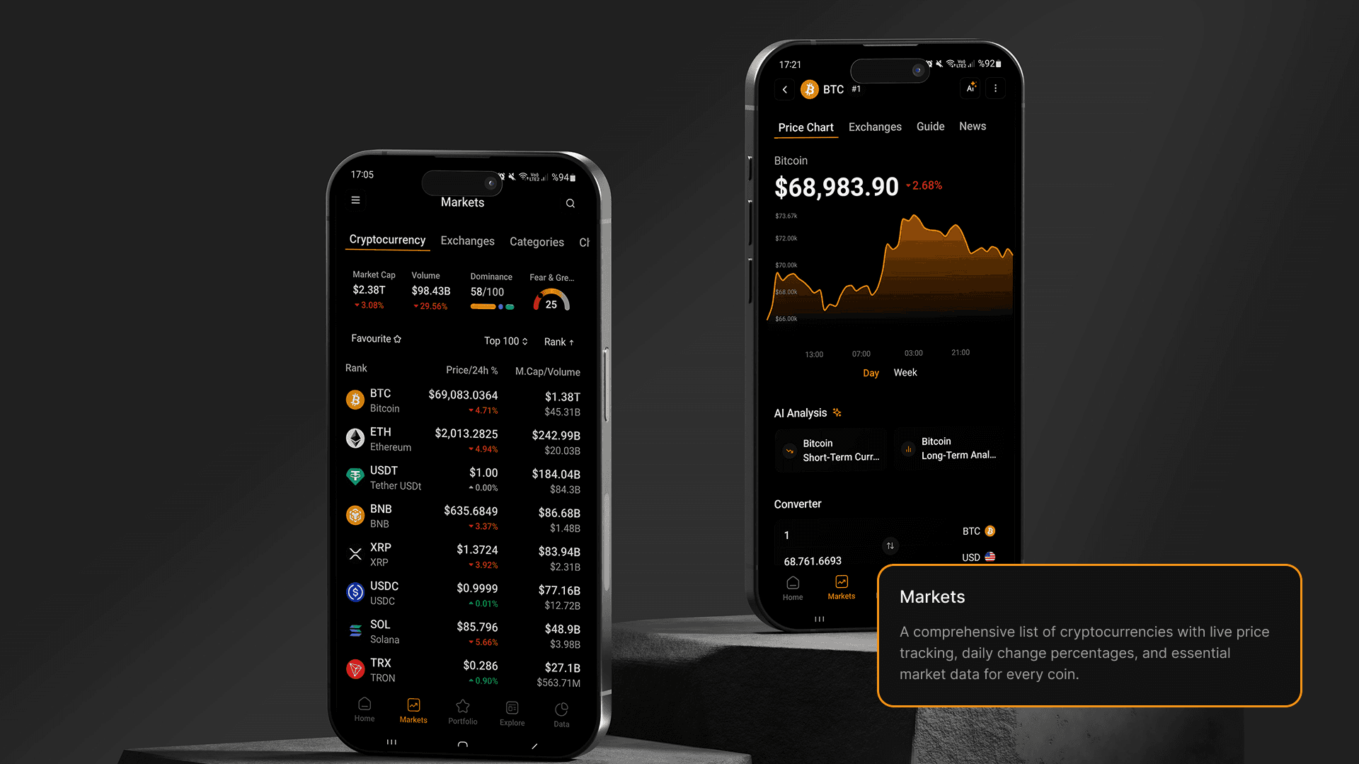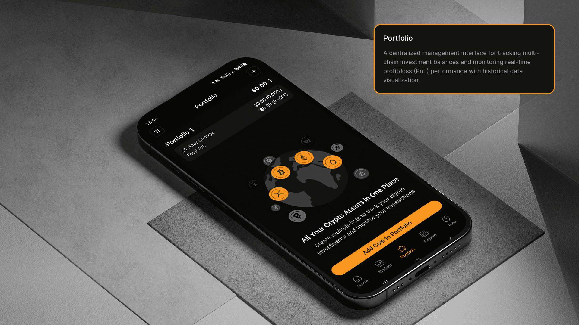 Gesture-Centric Visualization: I developed a custom mobile-first charting system that utilizes haptic feedback and intuitive gestures. Users can "long-press" to see precise data points or "pinch-to-zoom" into specific price clusters, making complex on-chain data physically interactive.